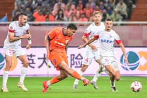 全场比赛结束,山东泰山1-1云南玉昆。